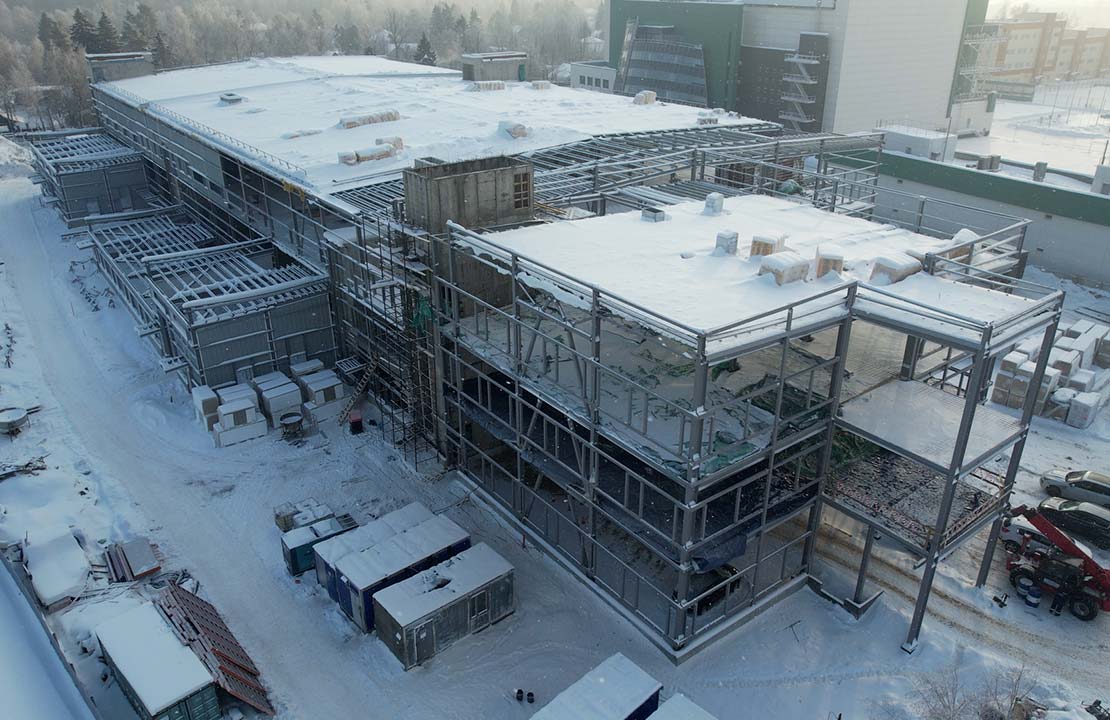 Byla uzavřena tepelná obálka budovy PKTK Sovelmaš díky tomu, že jsou dokončeny vnitřní a vnější opláštění stěn, krytiny, okna a další součásti.